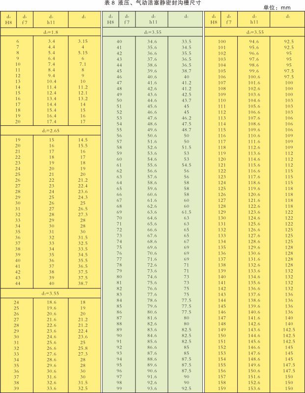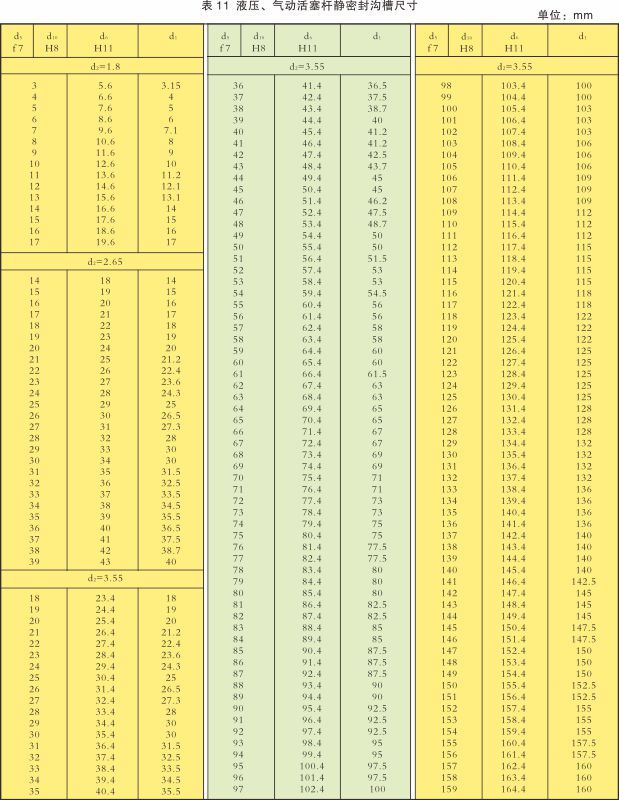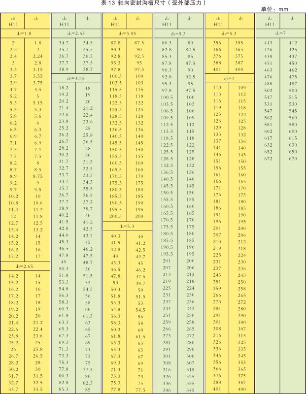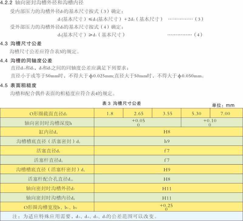 注:特殊應(yīng)用的O形圈溝槽尺寸應(yīng)由O形圈的制造商和使用者協(xié)商確定。