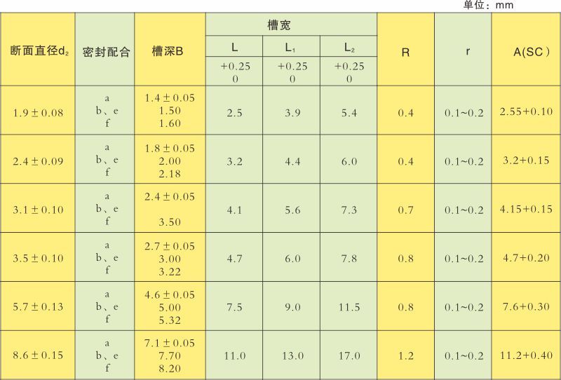 O形密封圈安裝溝槽尺寸(GB1235-76)